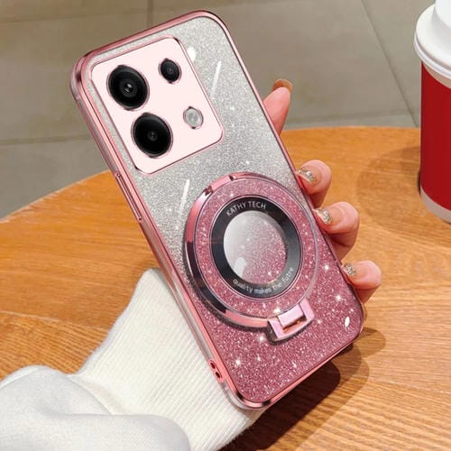 Funda de Teléfono de TPU con Soporte Redondo y Purpurina Degradada Plateada para Redmi Note 13 Pro 5G (Rosa)