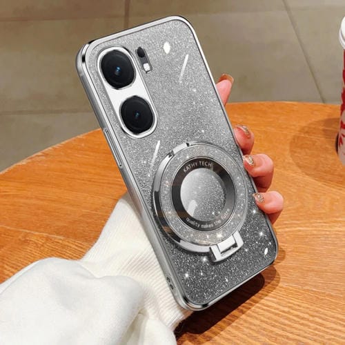 Funda de Teléfono de TPU con Soporte Redondo y Purpurina Degradada Plateada para Vivo Iqoo Neo9 (Plateada)