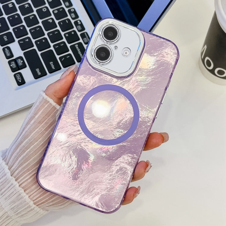 Funda de Teléfono TPU Magsafe iPhone 16 Textura Enchapada Película Lente Brillo (Morado)