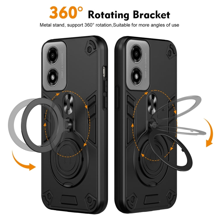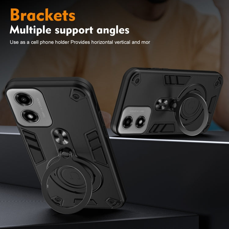 Funda híbrida TPU y PC para Motorola Moto G04/G24 con soporte giratorio 360° y anillo de metal (Negro)