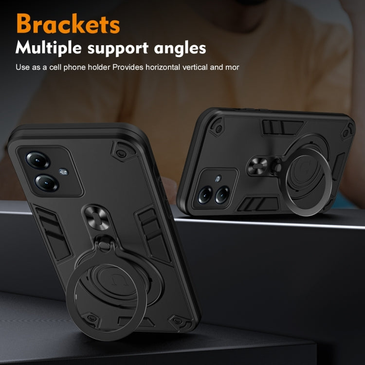 Funda híbrida TPU y PC para Motorola Moto G14 con Soporte Giratorio 360° y Anillo de Metal (Negro)