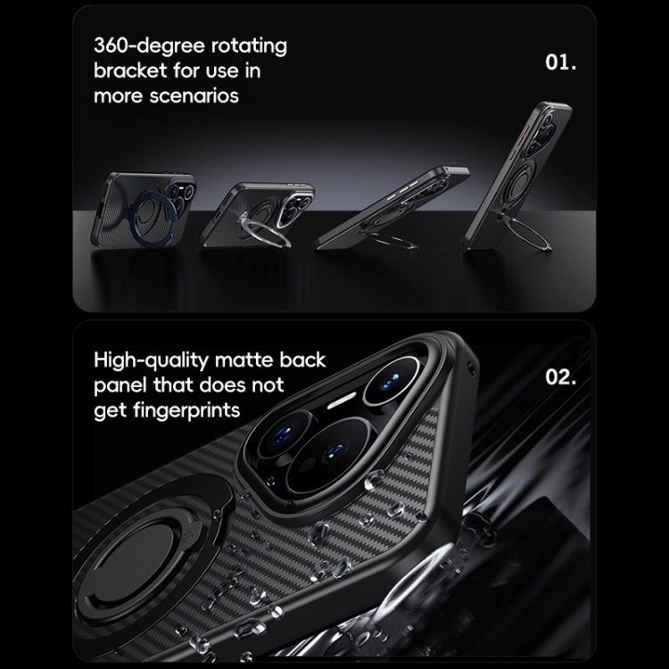 Funda Magsafe Fibra de Carbono con Soporte Giratorio 360° para Huawei Pura 70 Pro/70 Pro+ (Gris Oscuro)
