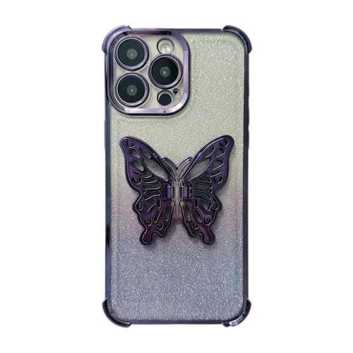 Funda TPU a Prueba de Golpes con Cuatro Esquinas y Diseño Mariposa 3D para iPhone 12 Pro Max (Púrpura Degradado)