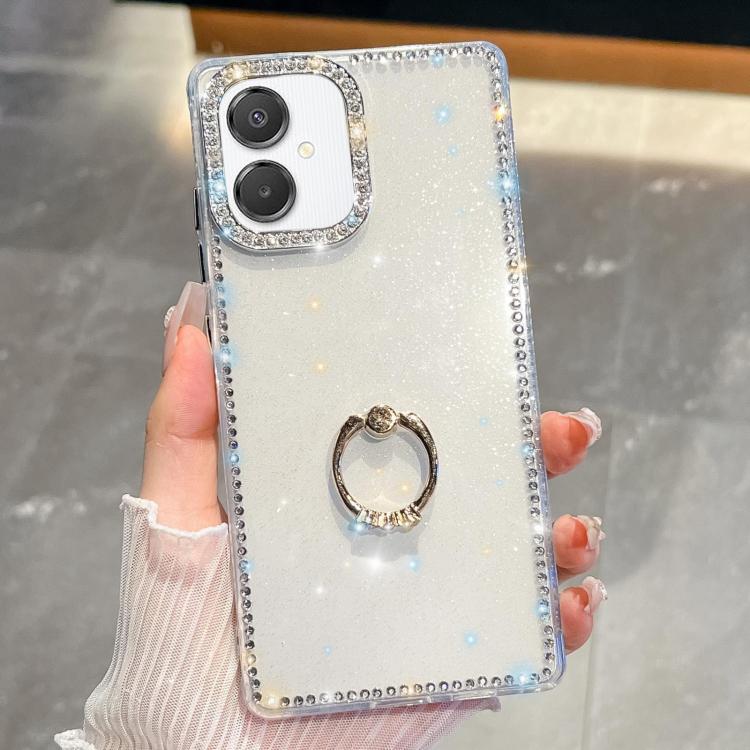 Funda de TPU con anillo anticaídas y purpurina para Samsung Galaxy A07 5G (blanco)