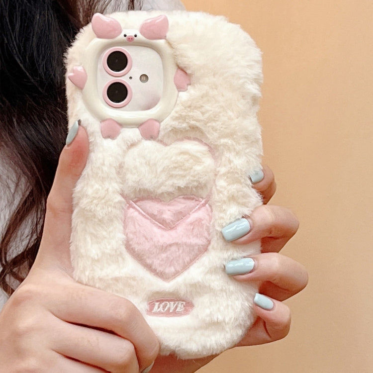 Funda TPU con Bordado de Felpa para iPhone 16 (Corazón Beige)