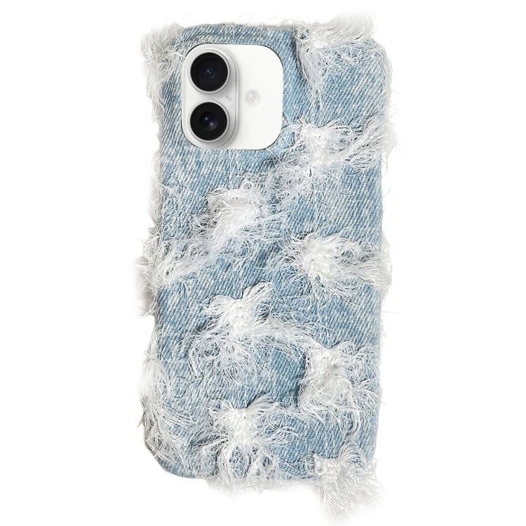 Funda TPU para iPhone 16 con Diseño de Mezclilla y Camelias (Azul Claro)