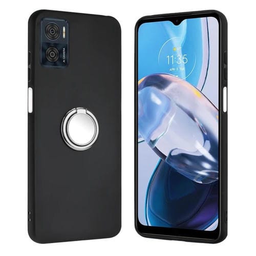 Funda TPU con Soporte de Anillo Mate para Motorola Moto E22 (Plateada)