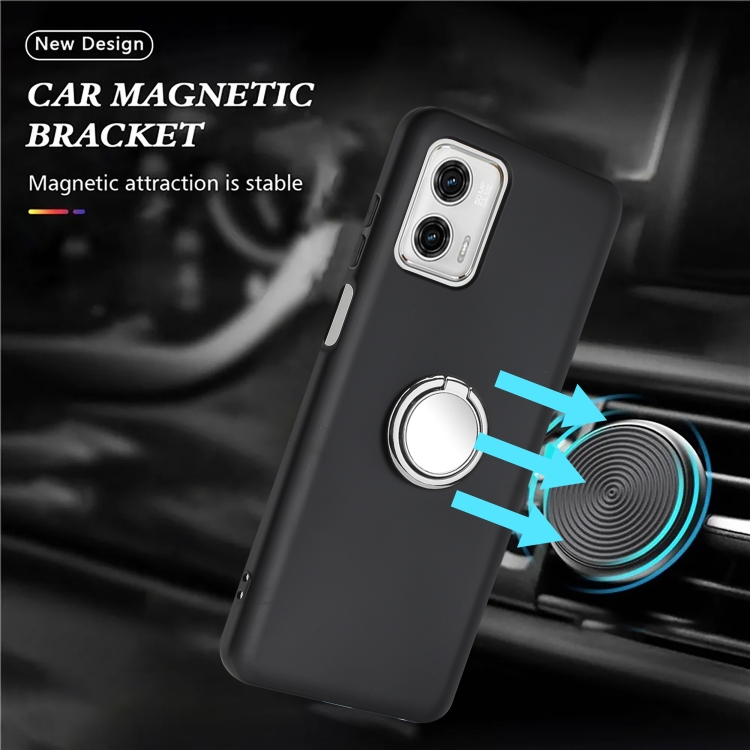 Funda TPU con Soporte de Anillo Mate para Motorola Moto G73 (Plateada)