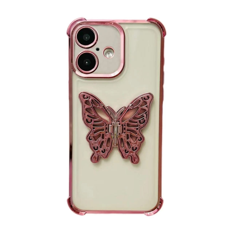 Funda de TPU con Soporte Mariposa 3D Galvanizada para iPhone 16 (Rosa)