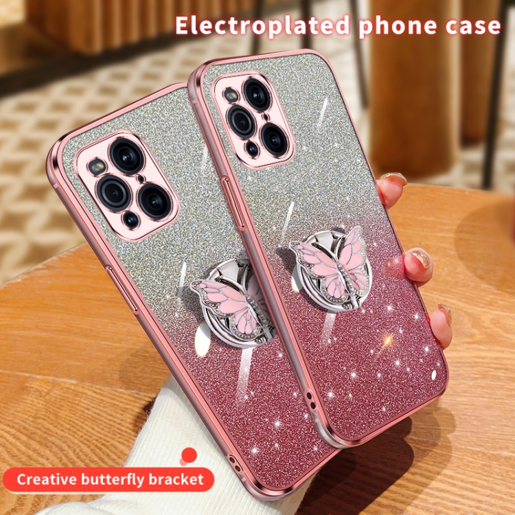 Funda de TPU con Soporte para Mariposa con Purpurina Degradada para Oppo Find X3 (Negra)
