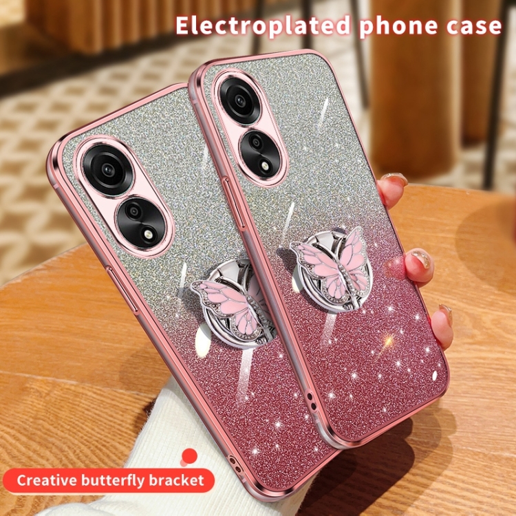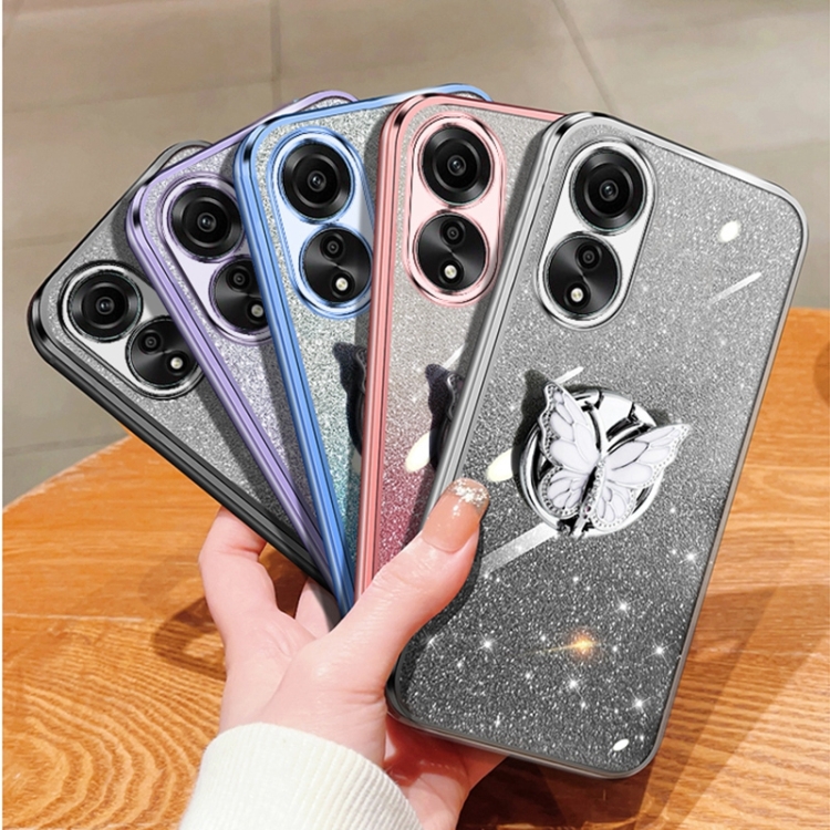 Funda de TPU con Soporte para Mariposa con Purpurina Degradada Plateada para Oppo A78 4G (Plateada)