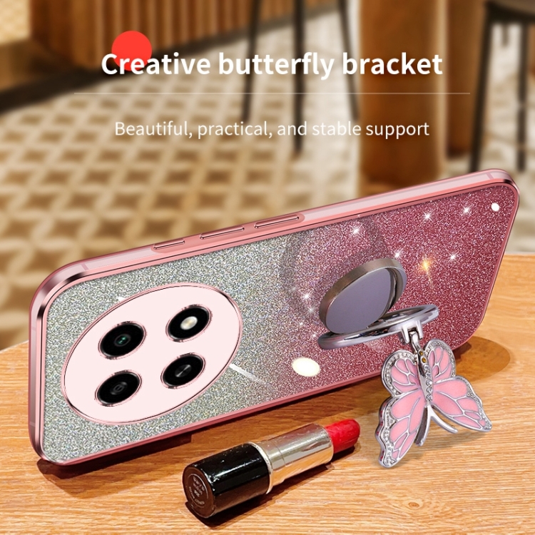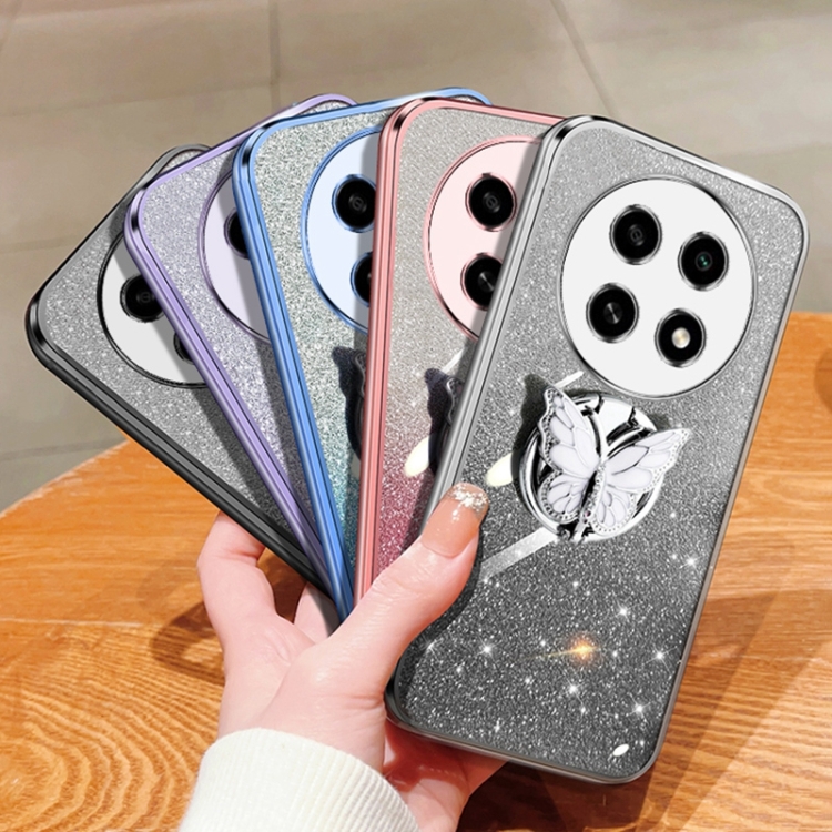 Funda de TPU con Soporte para Teléfono con Diseño de Mariposa y Purpurina Degradada para Oppo A2 Pro (Azul Sierra)