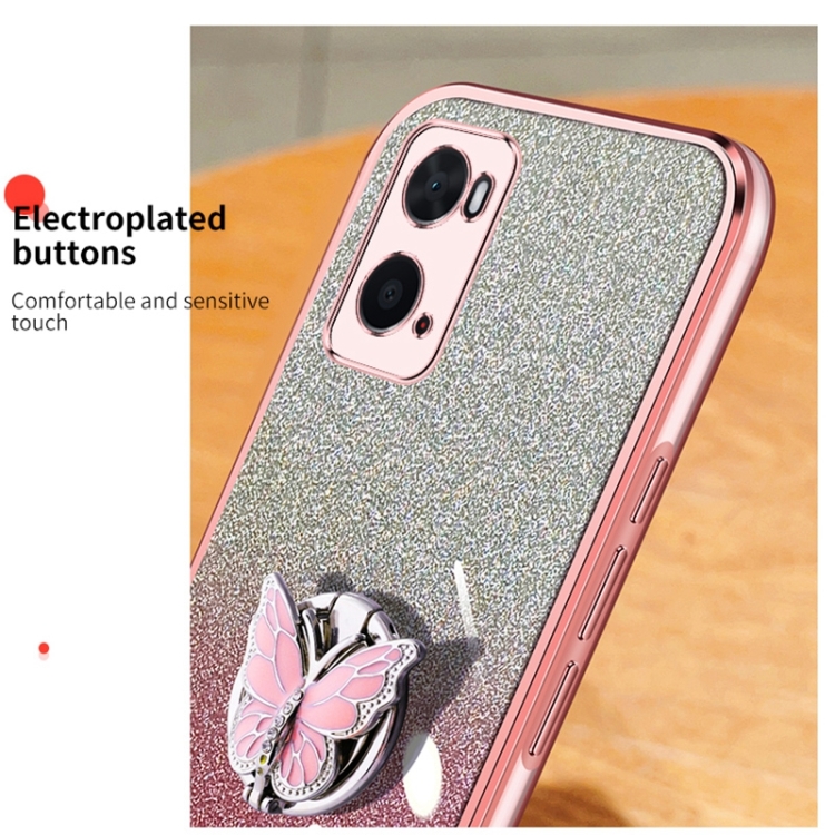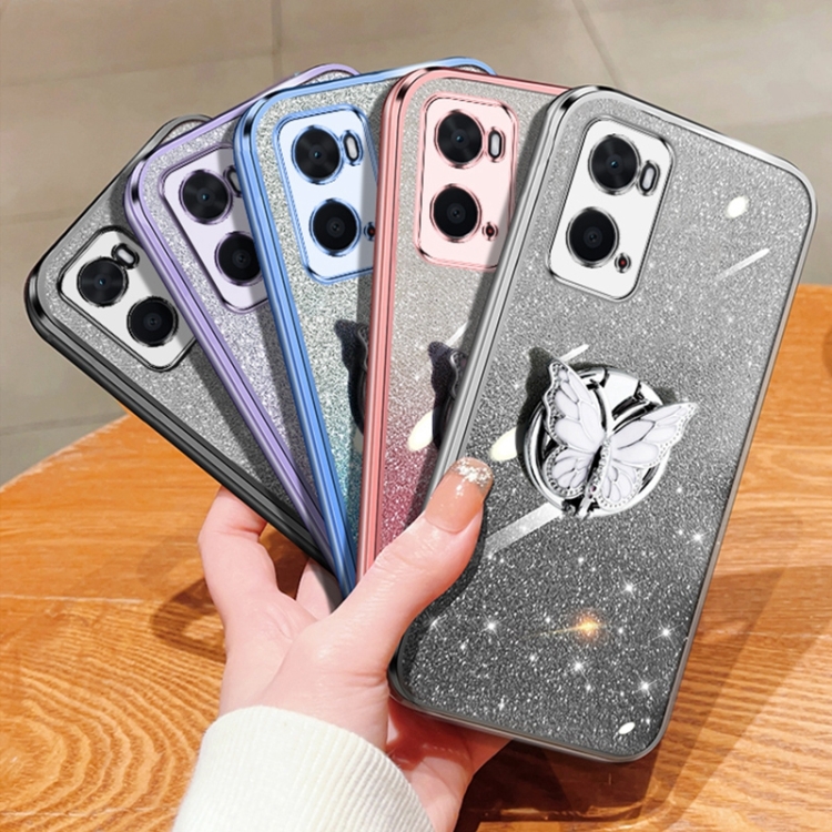 Funda de TPU con Soporte para Teléfono con Diseño de Mariposa y Purpurina Degradada para Oppo A36 (Negra)
