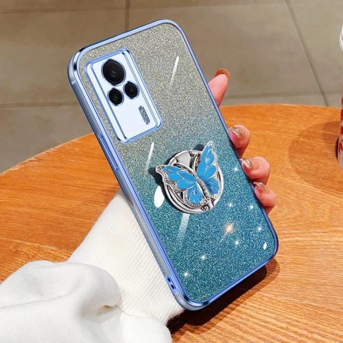 Funda de TPU con Soporte para Teléfono con Diseño de Mariposa y Purpurina En Degradado para Redmi K60E (Azul Sierra)
