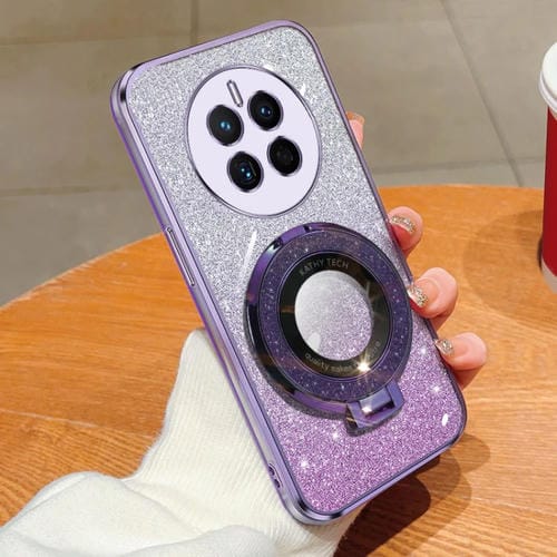 Funda TPU con Soporte Redondo y Purpurina Degradada para Huawei Mate 50/Mate 50E (Morada)