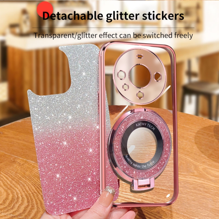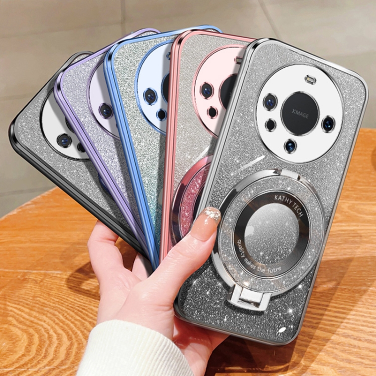Funda TPU con Soporte Redondo y Purpurina Degradada para Huawei Mate 60 (Negra)