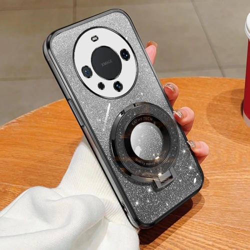 Funda TPU con Soporte Redondo y Purpurina Degradada para Huawei Mate 60 Pro/60 Pro+ (Negra)