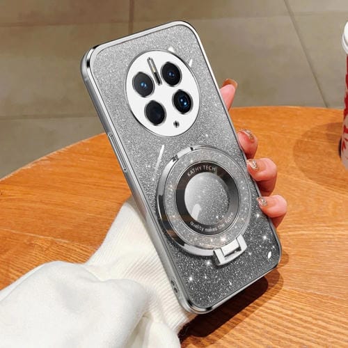 Funda TPU con Soporte Redondo y Purpurina Degradada para Huawei Mate 50 Pro (Plateada)