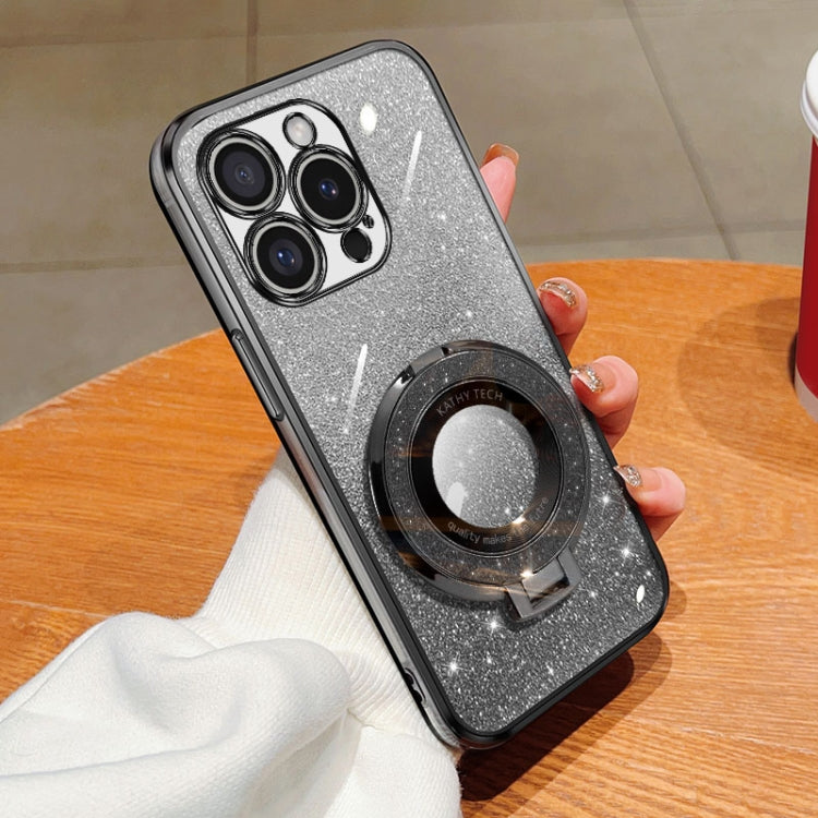 Funda TPU con Soporte Redondo y Purpurina Degradada para iPhone 16 Pro Max (Negra)