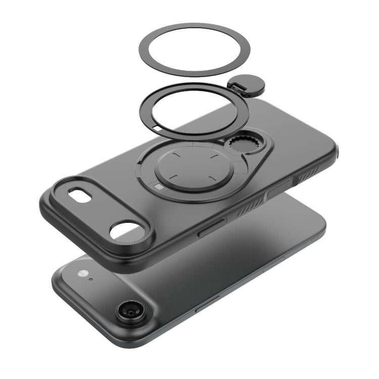 Funda de TPU MagSafe con anillo protector para iPhone Air con soporte giratorio de 360 grados (negra)