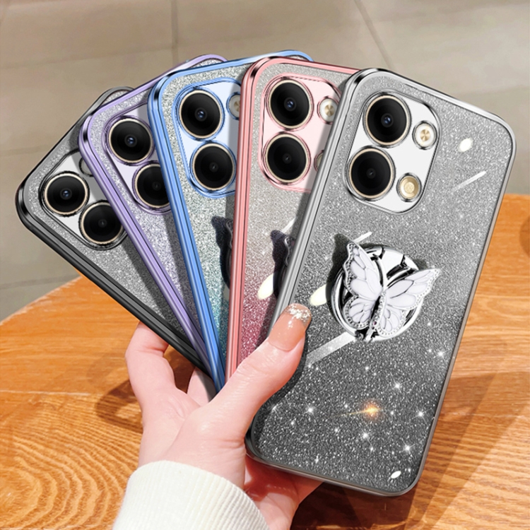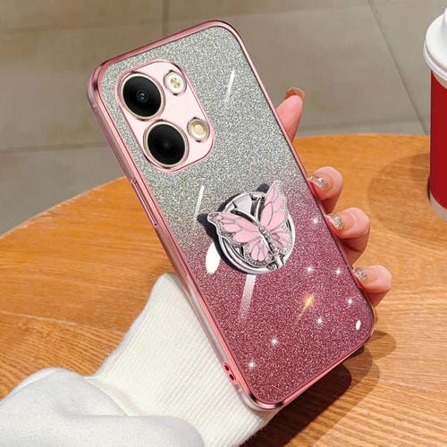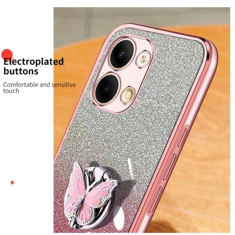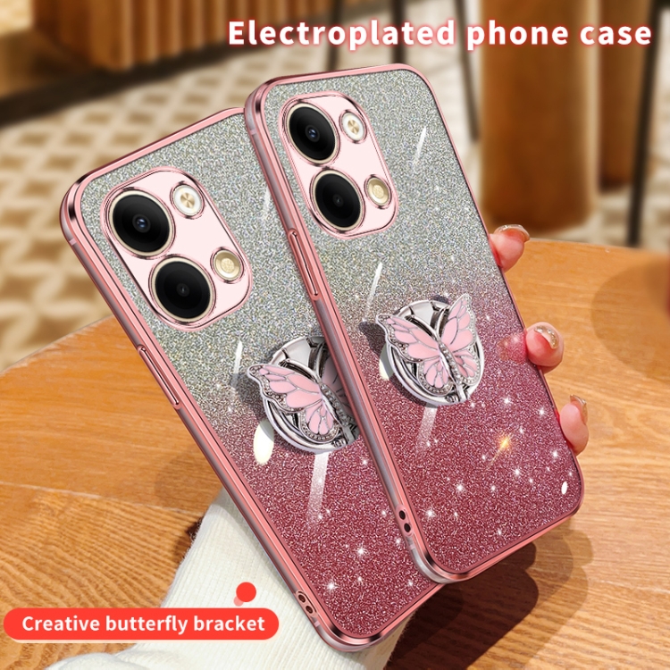 Funda de TPU para Teléfono con Soporte de Mariposa con Purpurina Degradada Plateada para Oppo Reno9 (Rosa)