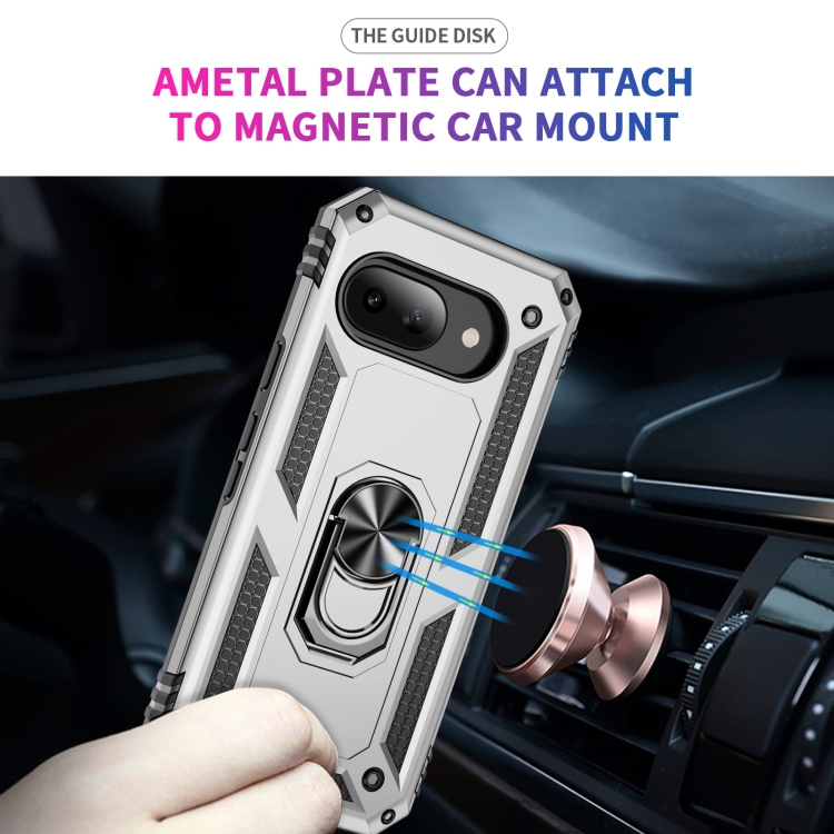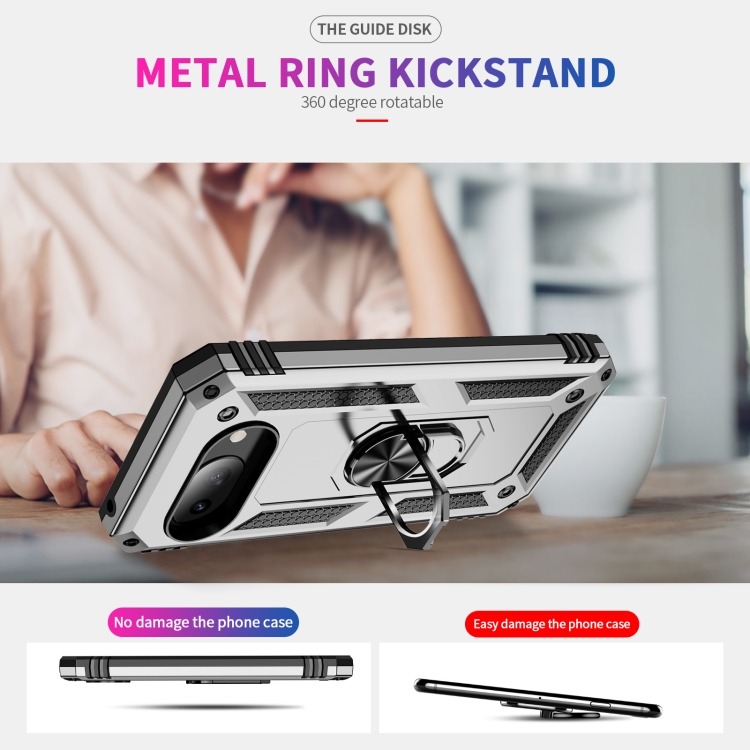 Funda TPU + PC para Google Pixel 9A a Prueba de Golpes con Soporte (Plateada)
