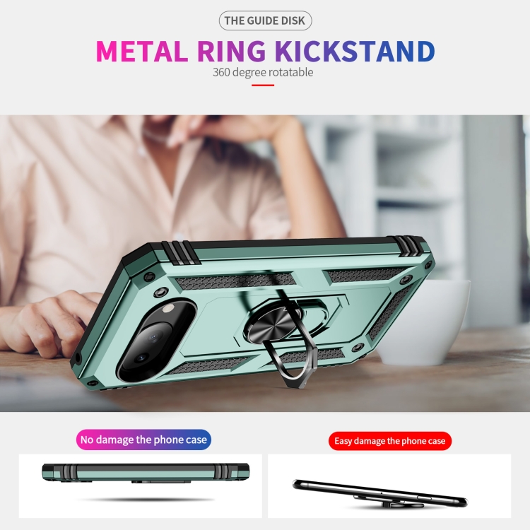 Funda TPU + PC a Prueba de Golpes con Soporte para Google Pixel 9A (Verde Oscuro)