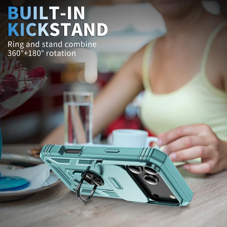 Funda deslizante de TPU + PC con soporte para iPhone 17 Pro (verde)