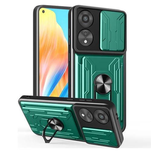 Funda Deslizante de TPU y PC con Ranura para Tarjetas para Oppo A78 4G (Verde Oscuro)