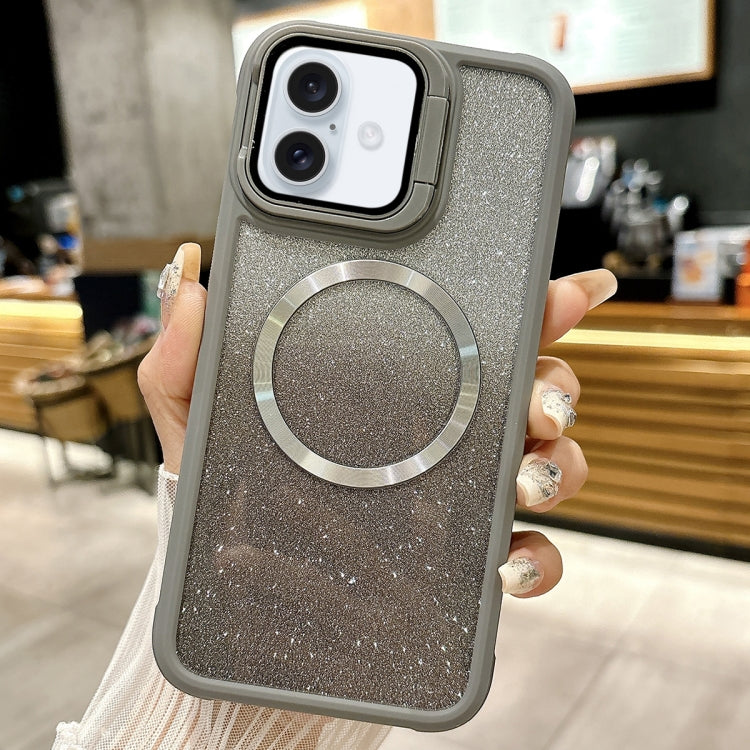 Funda híbrida Acrílico TPU con Purpurina y Degradado Grano de Cd para iPhone 16 (Gris)