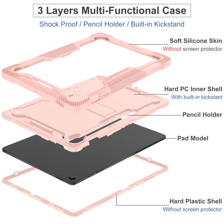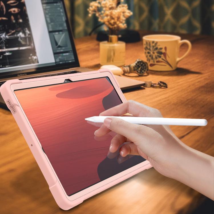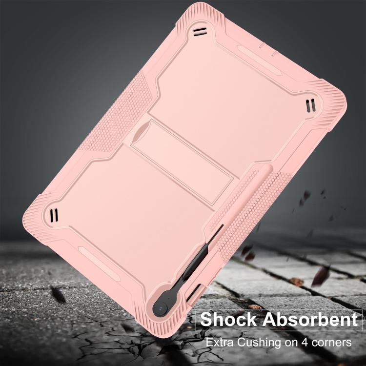 Funda híbrida de silicona a prueba de golpes para Samsung Galaxy Tab S10 FE+ con soporte (oro rosa)