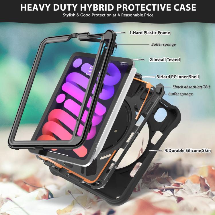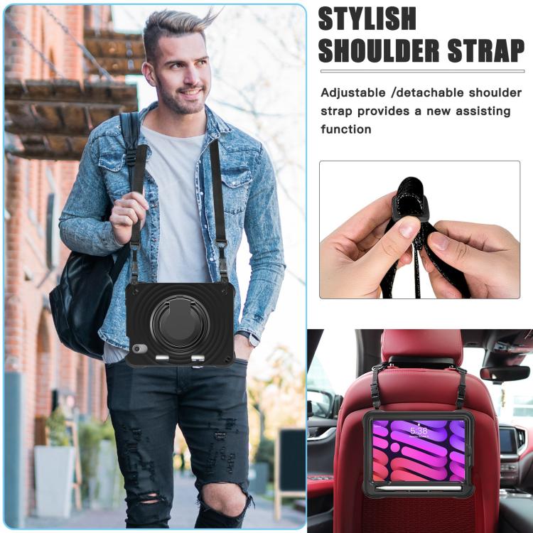 Funda híbrida Silicona para iPad Mini 2024 Mini 6 con Asa Giratoria (Negra)