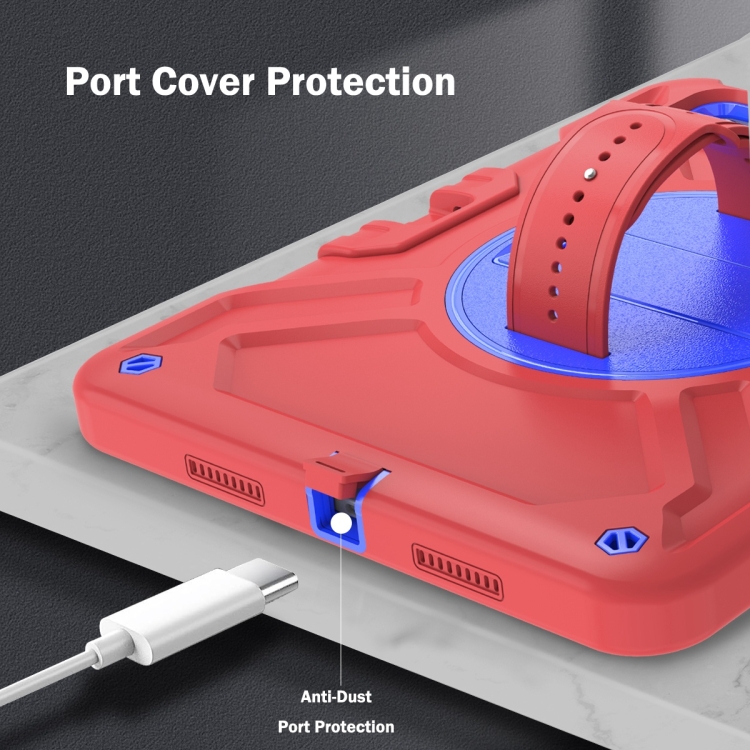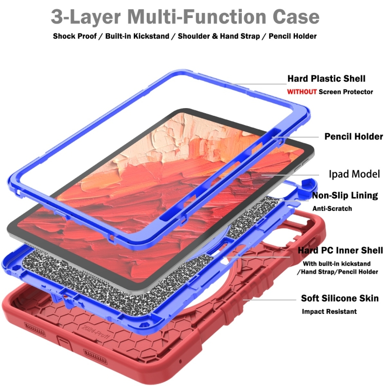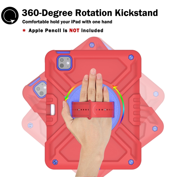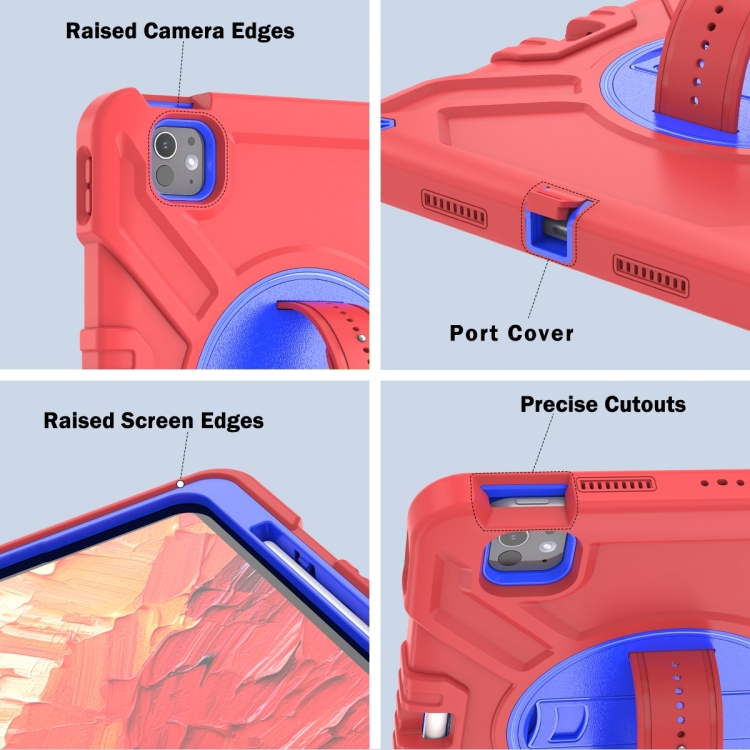 Funda híbrida de silicona para iPad Pro 11 (2024) X Rotation PC con correa (Rojo y Azul)
