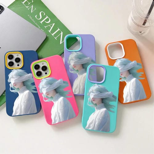 Funda híbrida TPU para iPhone 13 Pro Max con Los Ojos Vendados para niña (Azul Real)