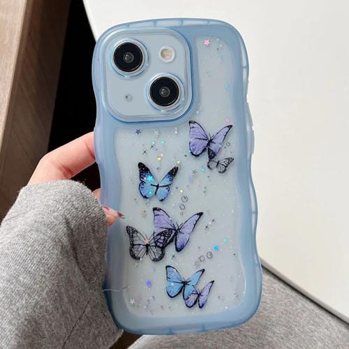 Funda híbrida TPU y PC iPhone 14 Borde ondulado Mariposa (Azul)