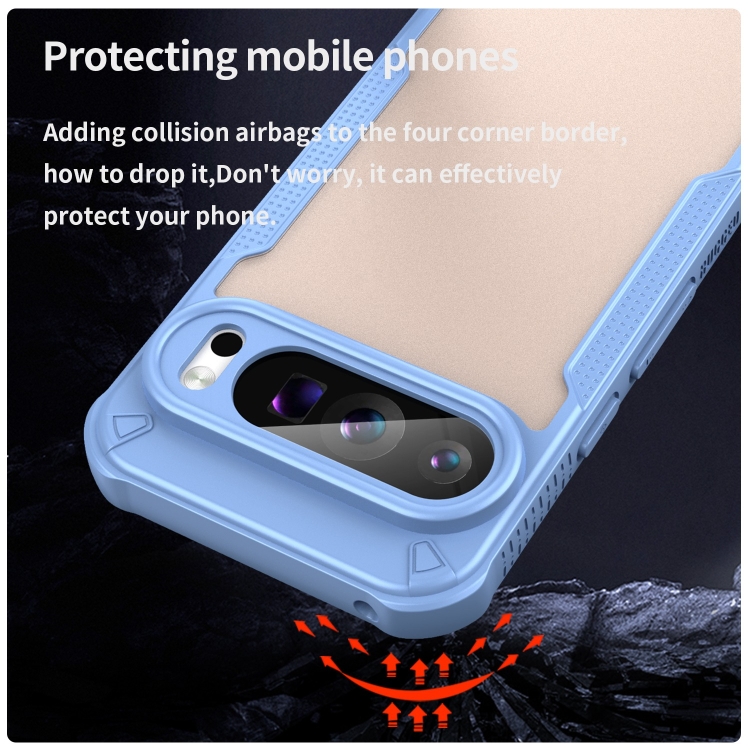 Funda Híbrida TPU y PC con Protección Glaseada para Google Pixel 9 Pro (Azul)