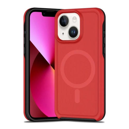 Funda híbrida TPU y PC para iPhone 13 con Protección Magsafe a prueba de golpes (Rojo y Negro)