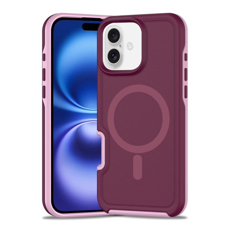 Funda híbrida TPU y PC para iPhone 16 con Protección Magsafe a prueba de golpes (Rojo Vino y Rosa Claro)
