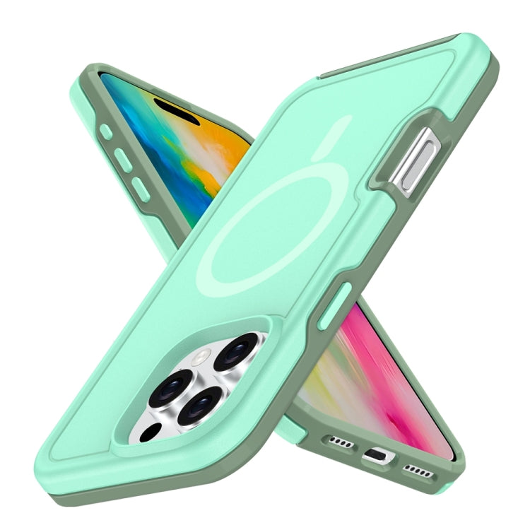 Funda híbrida TPU y PC iPhone 16 Protección Magsafe Prueba de golpes (Verde Menta y Verde Grisáceo)