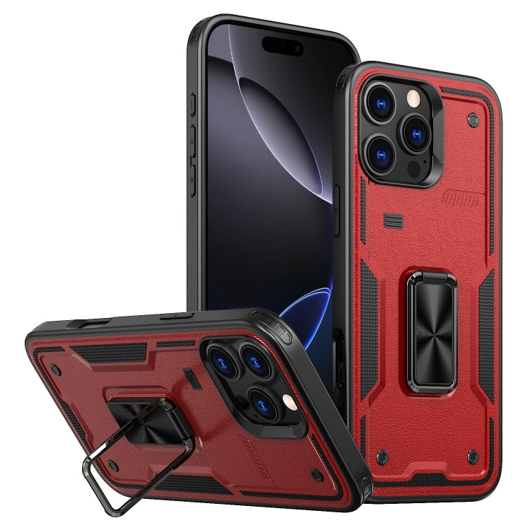 Funda Híbrida TPU y PC con Soporte de Anillo para iPhone 16 Pro (Roja)