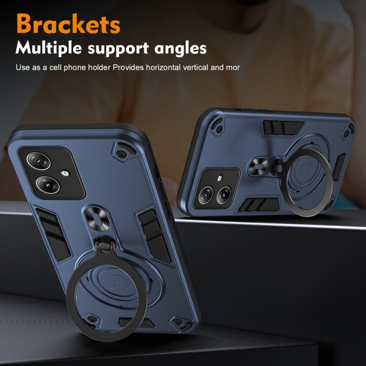 Funda híbrida TPU y PC con soporte giratorio 360° para Motorola Moto G54 (Azul Marino)