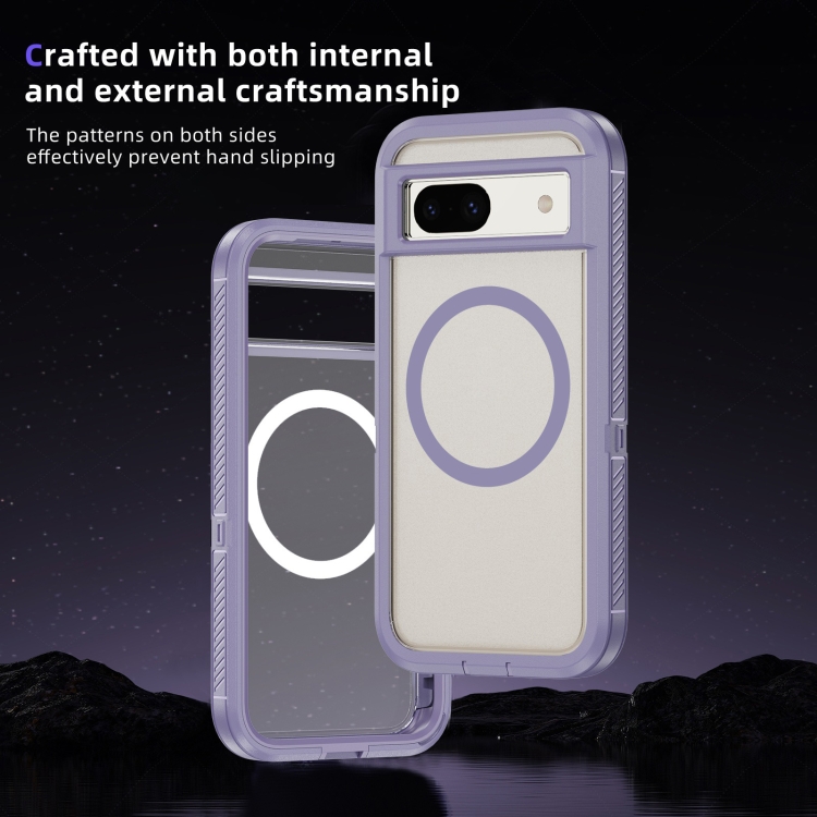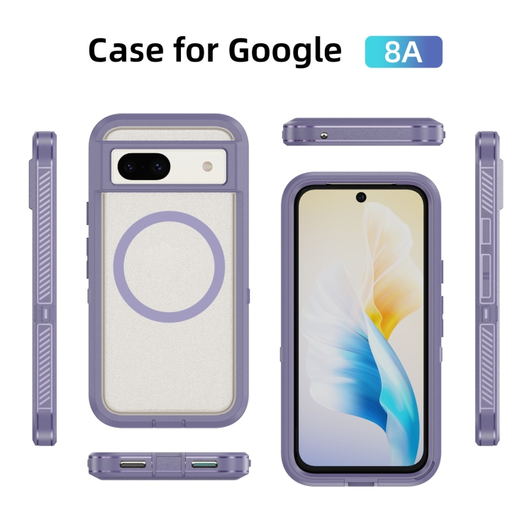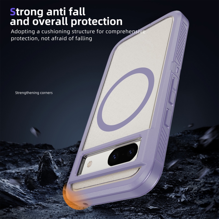 Funda híbrida TPU y PC con Soporte Magsafe para Google Pixel 8A (Transparente y Morada)
