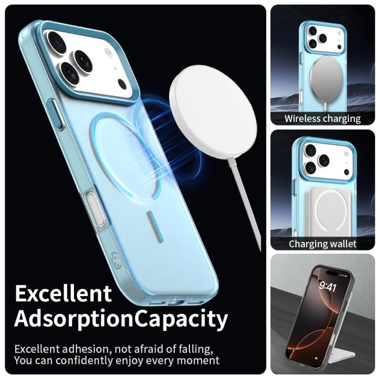 Funda híbrida de TPU y PC Magsafe con diseño circular fino tipo C para iPhone 17 Pro (azul)