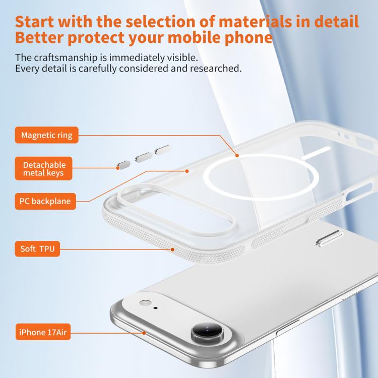 Funda híbrida de TPU y PC para iPhone 17 Air, imitación MagSafe original, bicolor (blanco transparente)
