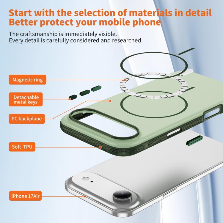 Funda híbrida de TPU y PC para iPhone 17 Air, imitación MagSafe original, bicolor (verde)