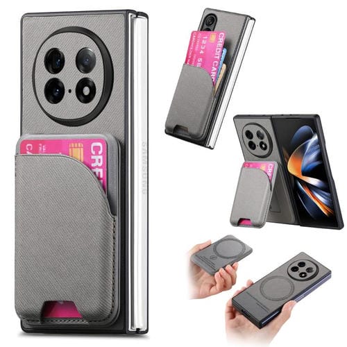 Funda Magnética para Oppo Find N5, de Piel y Sarga, con TaRJetero (Gris)