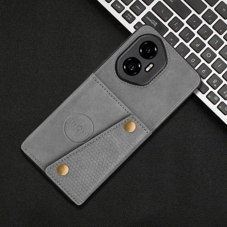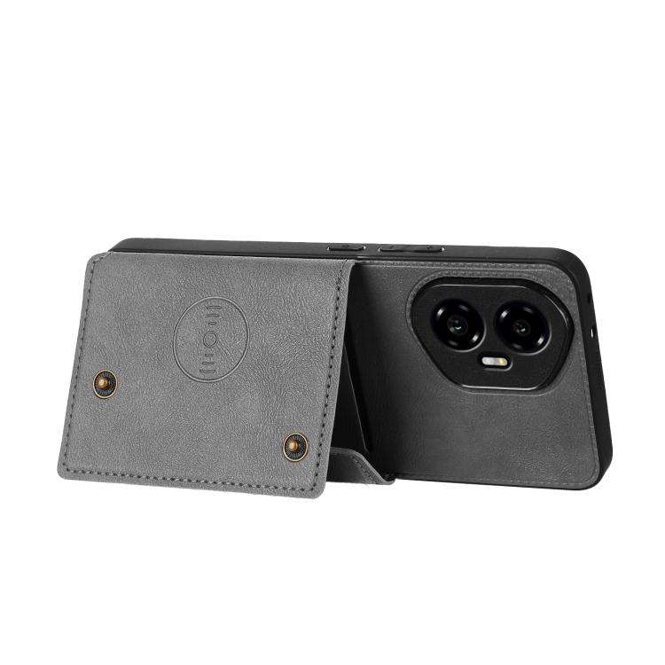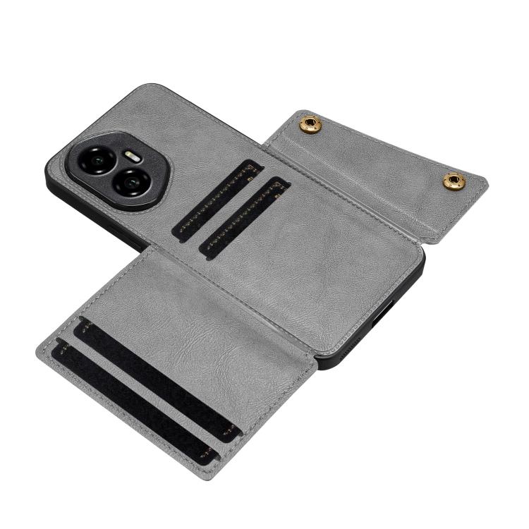 Funda Magnética para Honor 300 con Ranuras para Tarjetas y Doble Hebilla (Gris)
