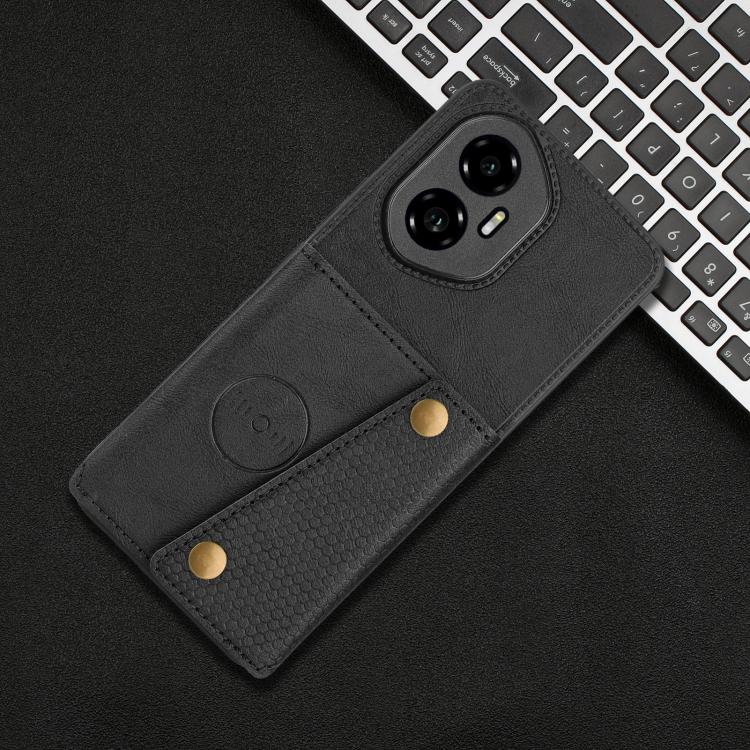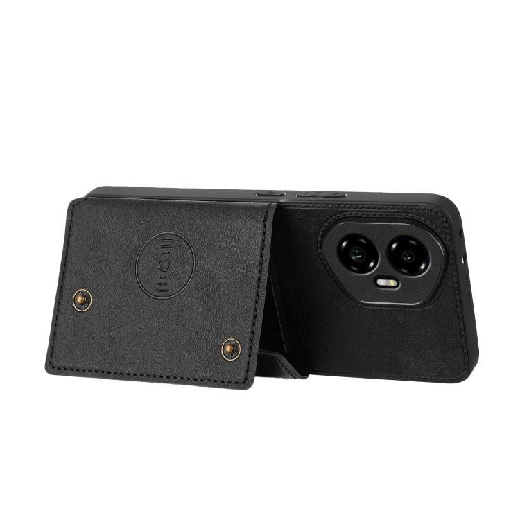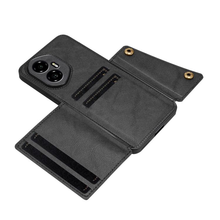 Funda Magnética para Honor 300 con Ranuras para Tarjetas y Doble Hebilla (Negra)