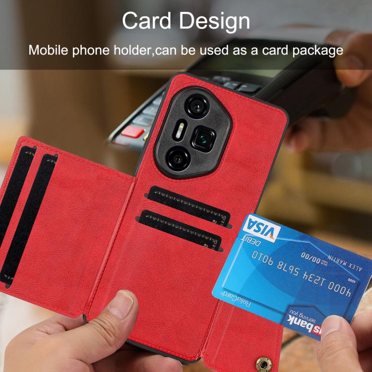 Funda Magnética para Honor 300 Ultra con Ranuras para Tarjetas y Doble Hebilla (Rojo)