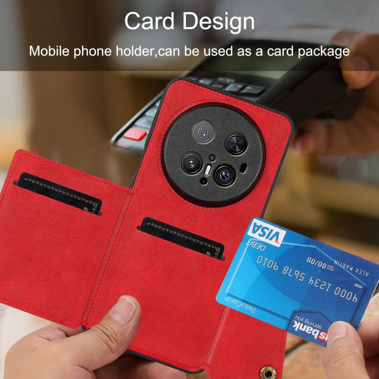 Funda Magnética para Huawei Mate 70 Pro y 70 Pro+ con Ranuras para Tarjetas y Doble Hebilla (Rojo)